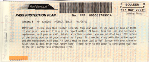 3. If either of the first two documents are lost or stolen you must immediately file a police report, purchase a new SaverPass and reservation ticket, and then submit the refund voucher, receipts for new tickets, and the police report to Rail France, and with baited breath, await your refund in 6 to 8 weeks not including time it takes international mail to wander across the Atlantic.