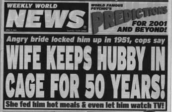It was also brought to my attention this week that the fine, peer-reviewed journal, Weekly World News ran a foretelling article about relationships. Here is the headline: